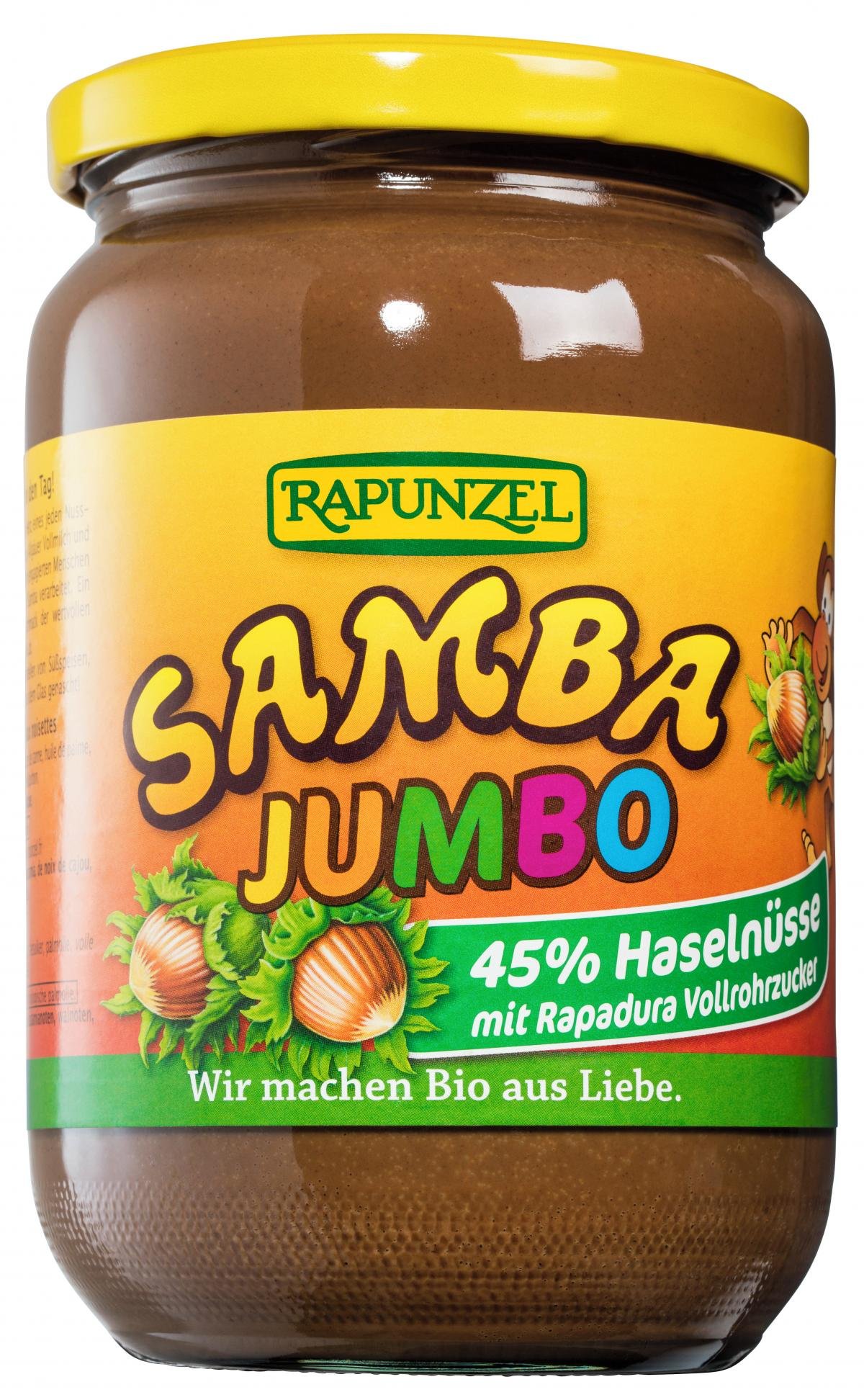 Starten Sie mit Samba schwungvoll in den Tag! 45 % aromatisch geröstete Haselnüsse lassen das Herz eines jeden Nuss-Fans höher schlagen. Zusammen mit edlem Kakao, Allgäuer Vollmilch und wertvollem Rapadura Vollrohrzucker werden sie zum zart schmelzenden Samba verarbeitet. Ein Hauch echter Bourbon Vanille rundet den Geschmack der wertvollen Zutaten ab. Rapadura Vollrohrzucker, Cristallino Rohrzucker und Kakaopulver sind fair gehandelt und stammen von unseren HAND IN HAND-Partnern. Die Konsistenz ist temperaturabhängig. Bei Zimmertemperatur cremig, im Kühlschrank gelagert fest.