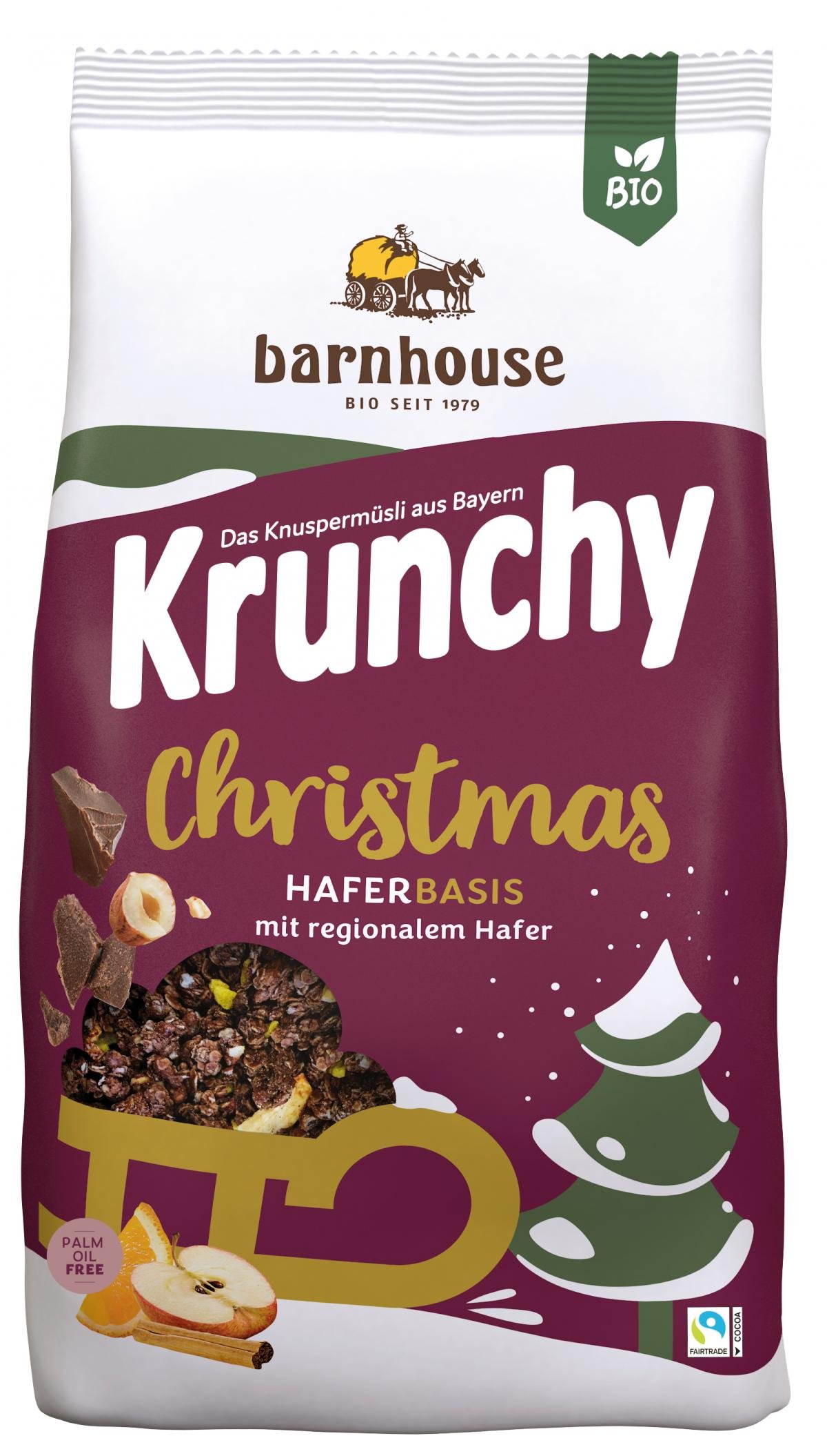 Krunchy Christmas beschert Ihren Kunden weihnachtlichen Knusper-Genuss mit all den köstlichen Aromen und Zutaten, die sie in dieser Zeit ganz besonders lieben: Schokolade, Nüsse, Äpfel, Orangen und dazu die typischen Lebkuchen-Gewürze.