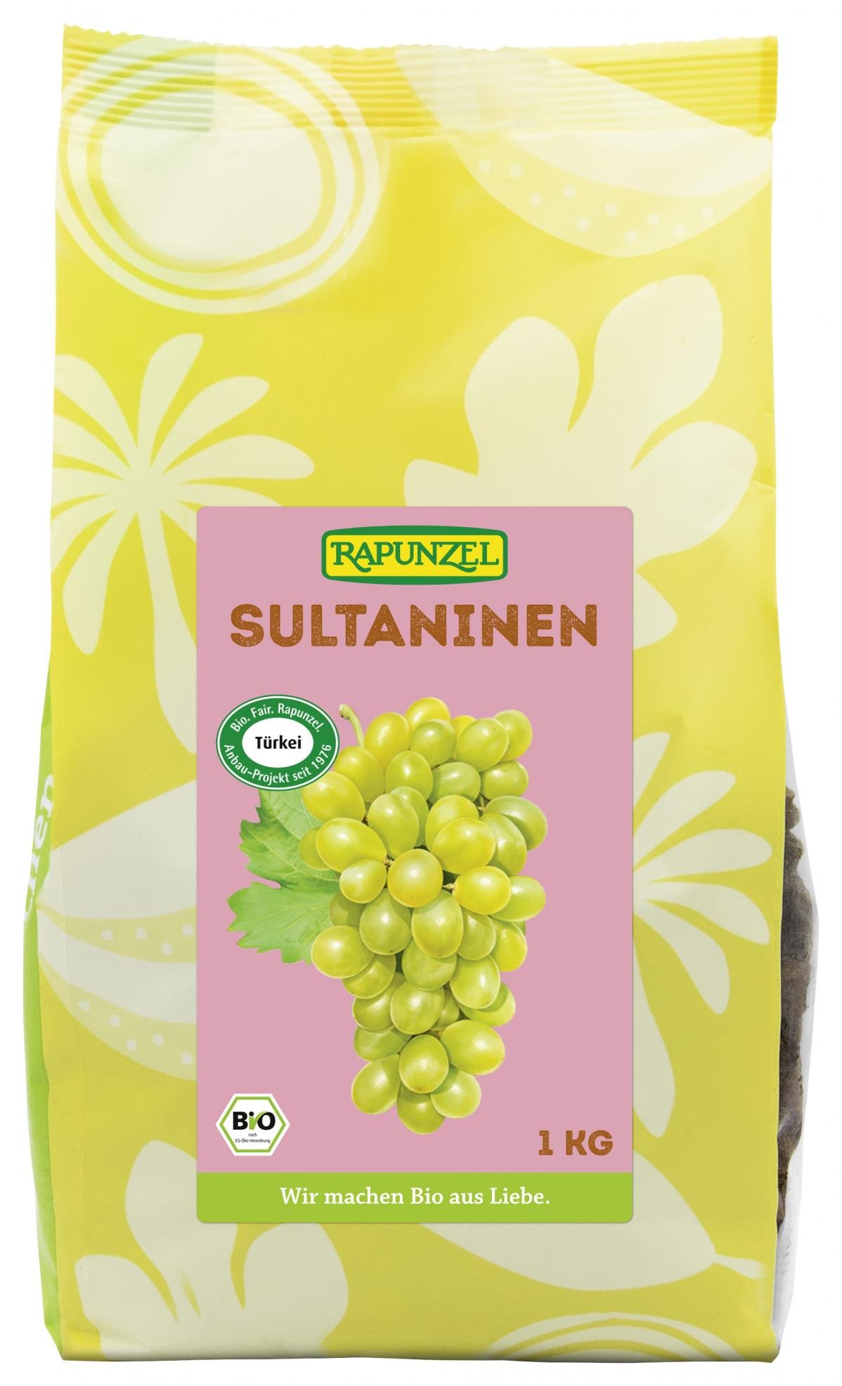 Herrlich saftig-süße und intensiv-aromatische Sultaninen aus dem Rapunzel Türkei-Projekt. Die hellen Trauben werden unter der türkischen Sonne getrocknet. Sultaninen werden vor dem Trocknen gedippt, dadurch verkürzt sich die Trocknungszeit und ihre helle Farbe bleibt erhalten. Die türkischen Sultaninen stammen aus dem Dorfprojekt Salihli.