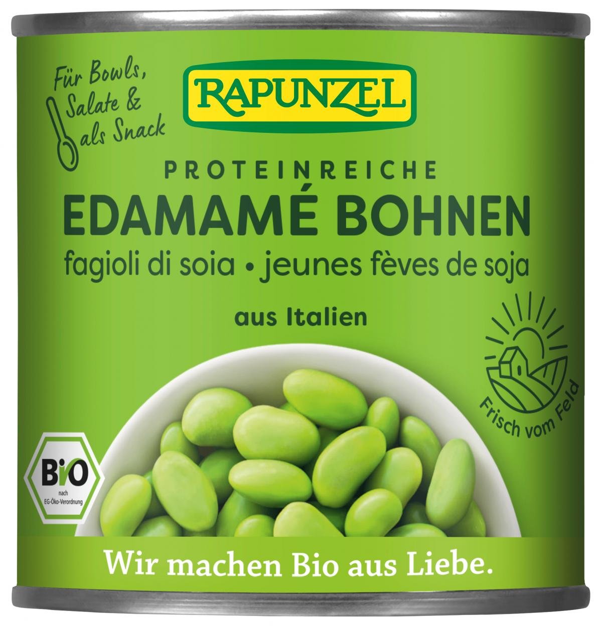 Edamamé Sojabohnen enthalten besonders viele Proteine und sind reich an Ballaststoffen. Sie werden in Italien angebaut und sind nussig-süßlich im Geschmack und besonders aromatisch. Edamamé Bohnen werden als junge grüne Sojabohnen direkt nach der Ernte in maximal 6 Stunden fix & fertig gegart und in Dosen abgefüllt. Erntefrische Qualität, die man schmeckt. Die Einweich- und Kochzeit entfällt, da die Bohnen schonend vorgekocht sind.