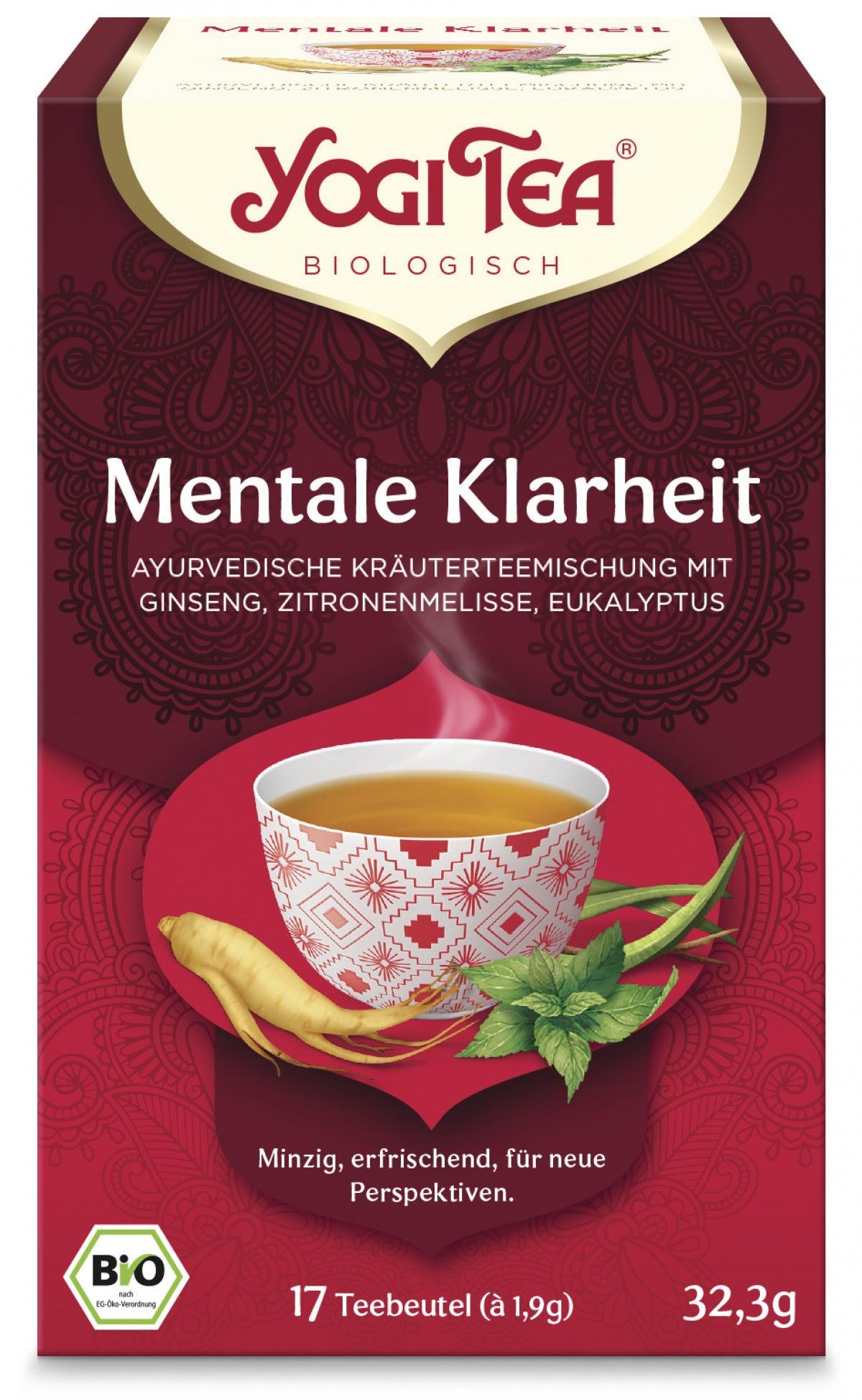 Pfefferminze (18%)*, Zitronenmelisse* (15%), Zitronengras*, Krauseminze (12%)*, Süßholz*, Rotbusch*, Ingwer*, Zimt*, Eukalyptus* (4%), Ginsengwurzel* (2%), Maca*, schwarzer Pfeffer*, Orangenöl*, Kardamom*, Pfefferminzöl*.
