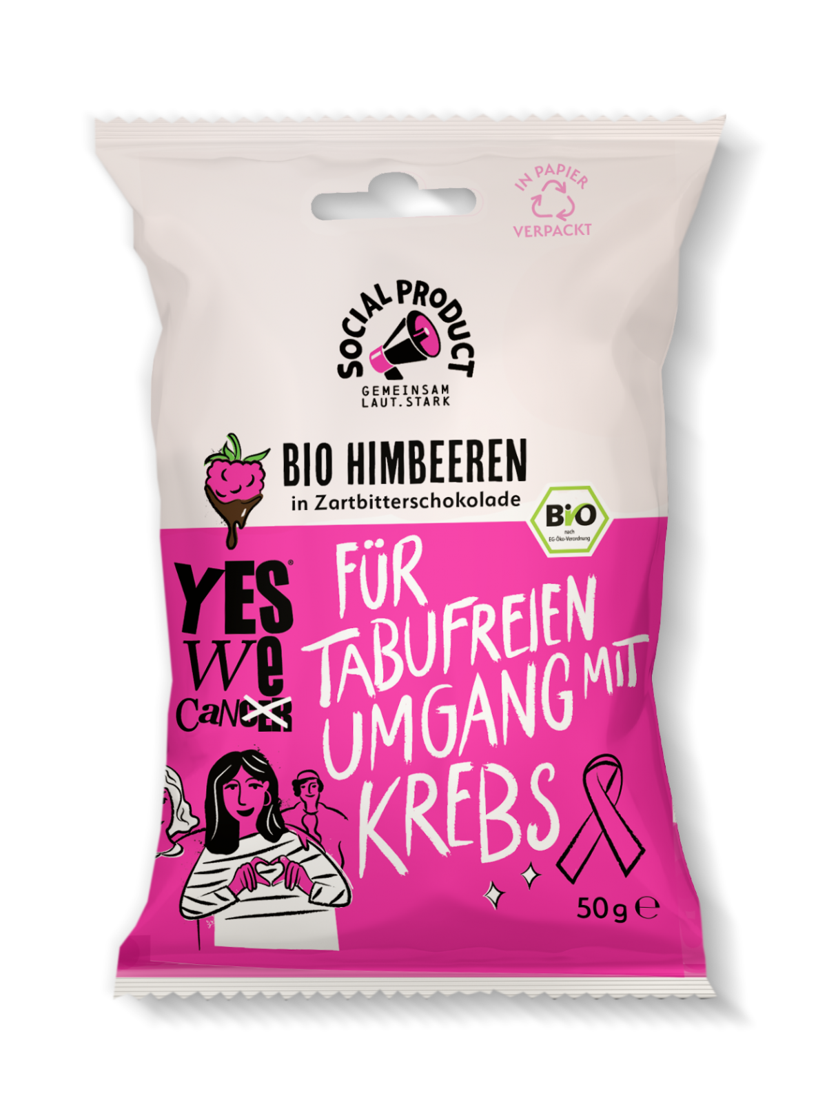 Sie ist da, die Bio-Himbeere in Zartbitter-Schokolade, welche in Kooperation mit der gemeinnützigen Initiative YESWECAN!CER entwickelt wurde. Der in Österreich hergestellte, bio-zertifizierte Himbeer Snack ist in einer 100% recyclingfähigen 50g Tüte erhältlich. 0,25 Euro pro verkaufter Tüte fließen in die Arbeit der YESWECAN!CER gGmbH.
