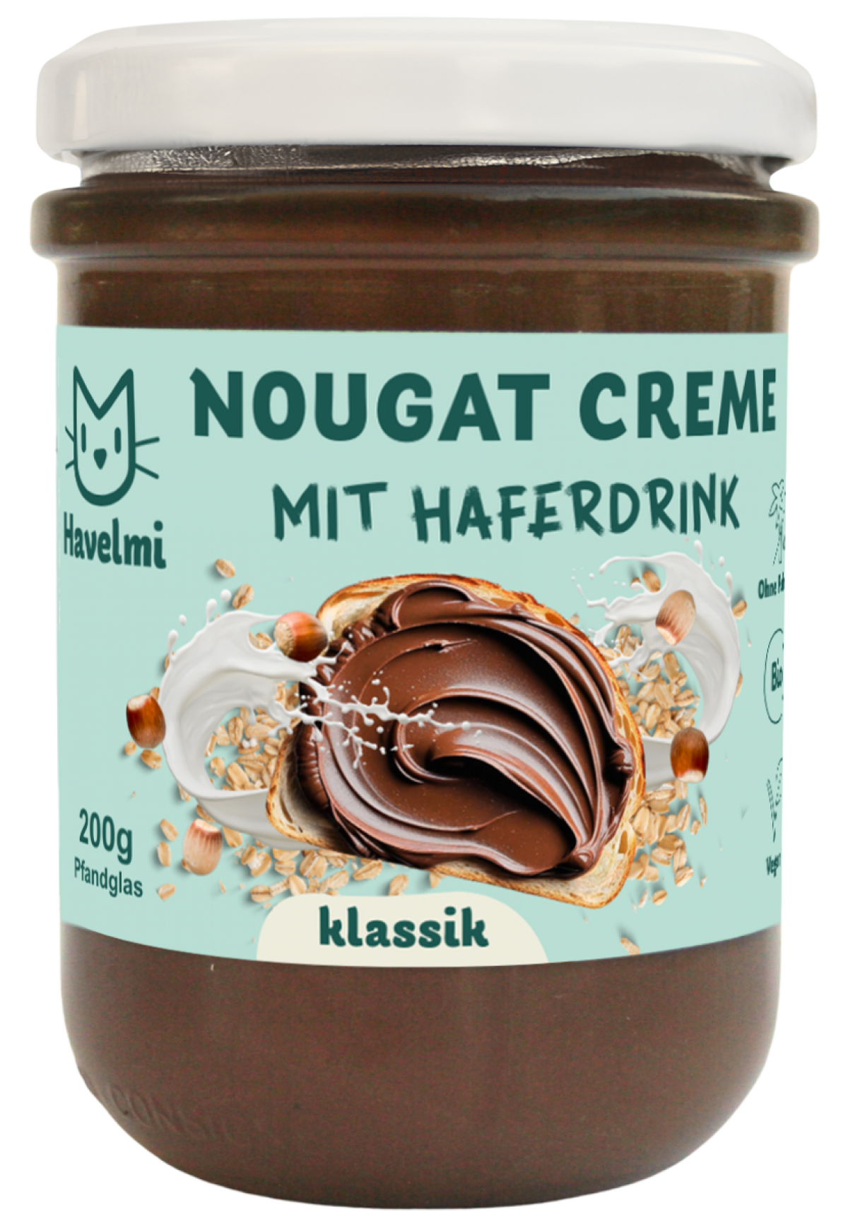 Havelmi goes nuts! Die Havelmi Nougat Crème mit Haferdrink ist da. Ein fein abgestimmter Aufstrich aus Haselnüssen, Schokolade und dem Besten aus einem Glas Haferdrink – cremig, pflanzlich, in Bio-Qualität und ohne Palmöl! Und Deine Stulle sagt danke!