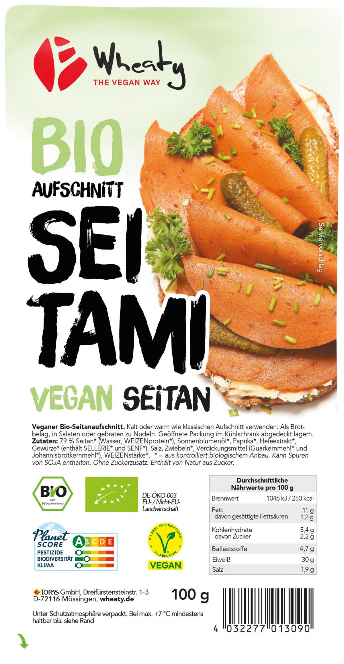Wheatys vegane Alternative zur klassischen Salami. Traditionell gewürzt und fein in der Konsistenz. Ein echtes Geschmackserlebnis, das dank seiner pflanzlichen Zutaten kein Tierleid verursacht. Würzig, leicht pikant, mit einer Paprikanote. Der perfekte Brotbelag, auch als Pizzabelag oder als Topping im herzhaften Salat geeignet. Geöffnete Packung im Kühlschrank abgedeckt lagern