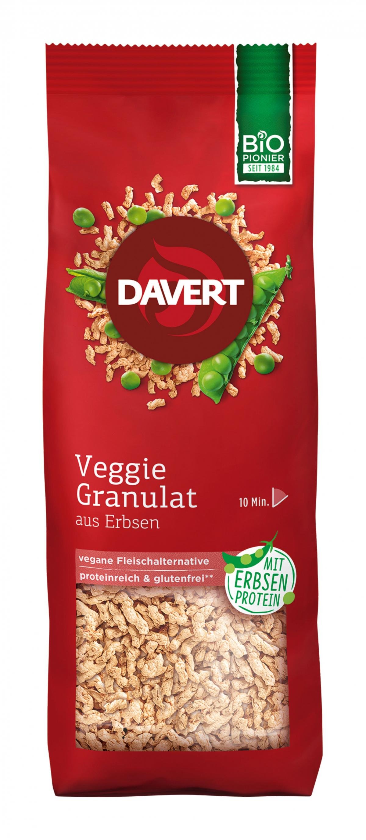 Unser glutenfreies Veggie Granulat ist die ideale, vegane Fleischalternative aus Erbsen.